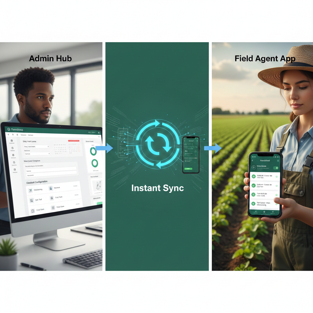 - Customized task checklists for different types of interactions, whether it's a new farmer onboarding, a routine crop check, or a specialized soil test.